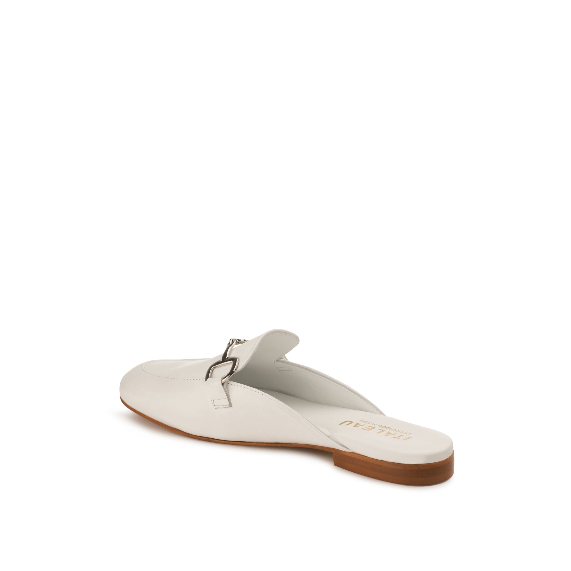 - Italian leather upper with silver metal bit detail